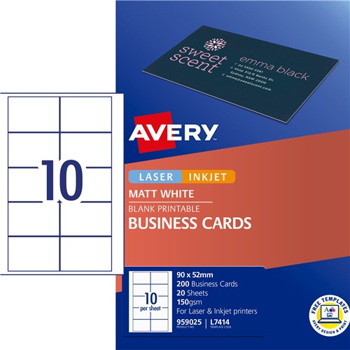 • Business Card Avery L7414-20 Matt 90X52mm 150gsm