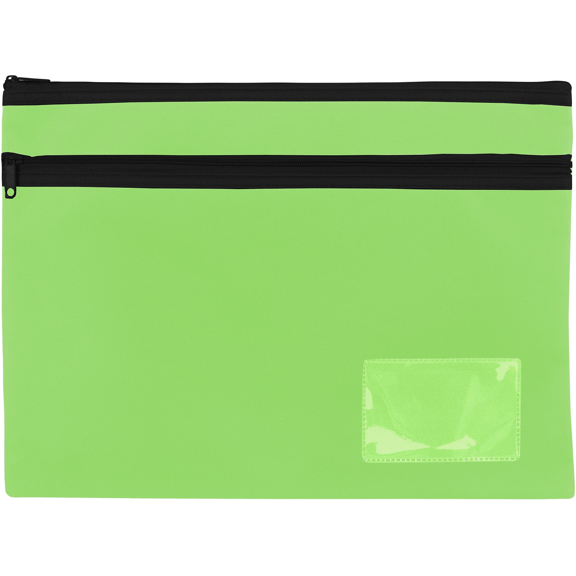 Quality metal zip for secure closure Internal USB pocket Front insert for name card 2 zip 350mm x 260mm Lime Green
