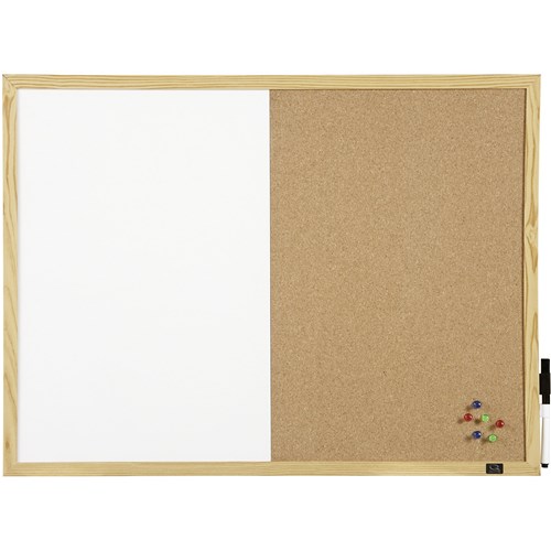 • Combination cork bulletin and dry-erase board pulls it all together.