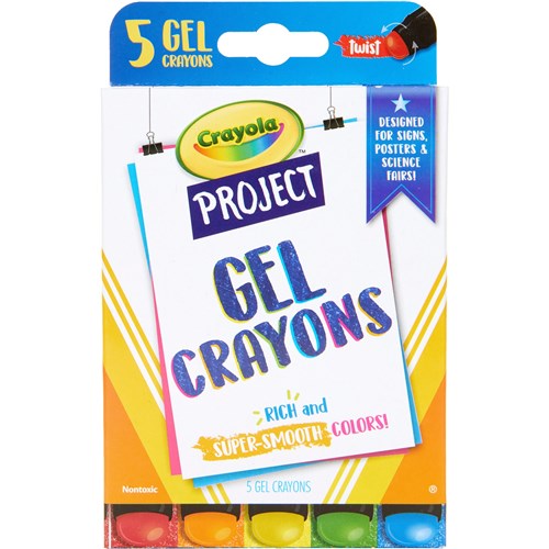 CREATE: Designed for a variety of projects and assignments, Crayola Project Gel Crayons creates rich and super smooth colours; making signs, posters or school projects shine! COLOURS: Featuring classic colours in Red, Orange, Yellow, Green and Blue. These colours are rich, smooth and bright! Perfect for making your art and craft work stand out!