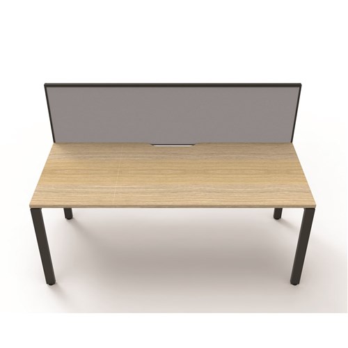 With Screen Natural White Worksurface With 410mm W x 50mm D Scallop Cable Access 1500mm W x 780mm D x 730mm H (Overall), 1500mm W x 750mm D x 730mm H Per User 60mm x 30mm Profile Leg Underframe In Black P/C 495mm H x 30mm T Pinnable Privacy Screen Upholstered In Grey Fabric With Matching Black Powdercoat Extrusion Adjustable Levelling Feet 5 Year Manufacturer's Warranty