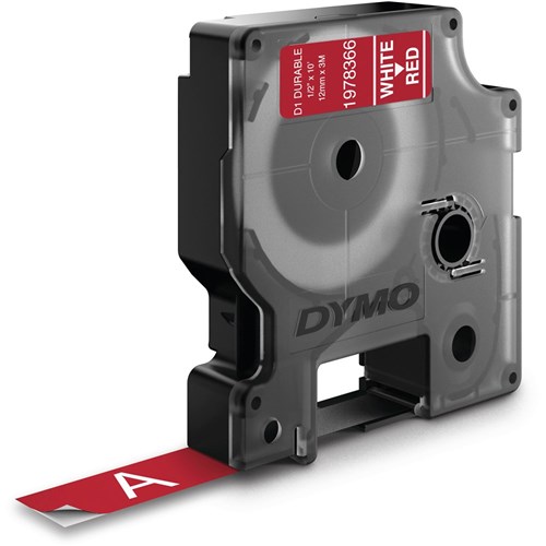 Dymo D1 Durable 12mmx3m White on Red Label Tape