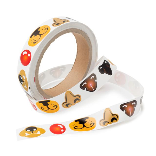 This roll of 600 noses are coloured and feature 6 different styles. Measures approx. 15mm.