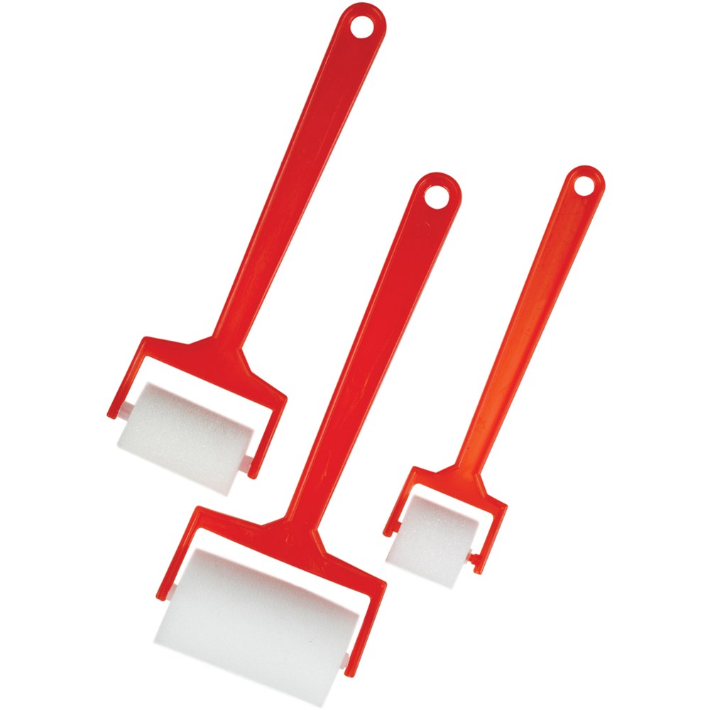 • They have a plastic handle with a soft sponge roller.