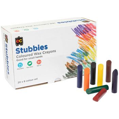 Educational Colours Stubbies Coloured Wax Crayons are ideal for small hands. Designed to be difficult to break, children can press down hard knowing these Crayons have superior strength. Non-toxic and washable. Each Crayon measures 57mm x 14mm.