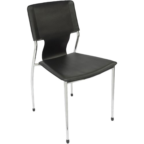 Fernando Visitor Chair Chrome Four Leg Frame Black PU Seat and Back