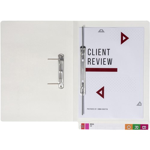 • Each file is fitted with a spring transfer file fastener; which allows papers to be secured and easily accessed whenever required.