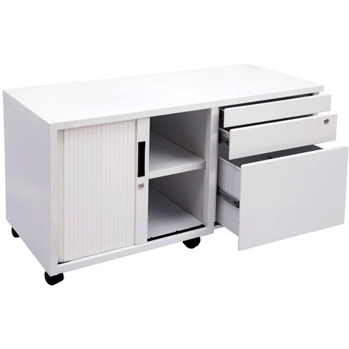 Go Steel Mobile Caddy With Left Hand Tambour Door White Satin