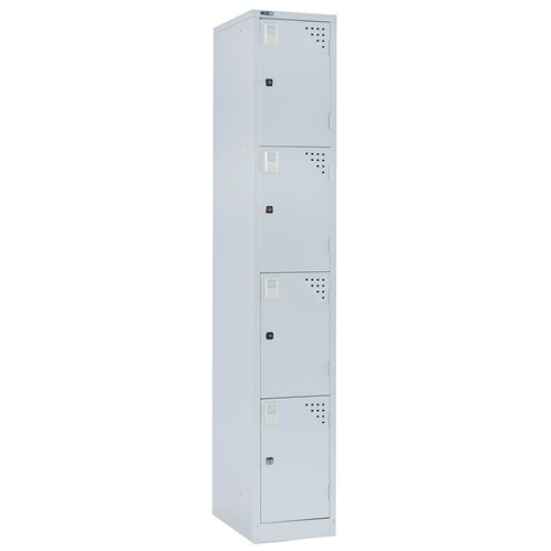 Go Steel Storage Locker Four Door 1830Hx305Wx455mmD Silver Grey