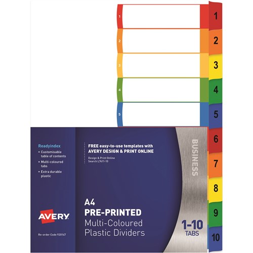 Indices A4 Polypropylene Avery Ready Index L7411-10 1-10