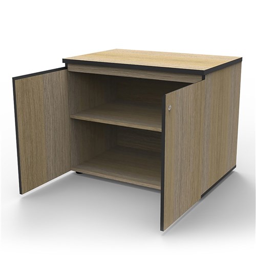 Infinity Swing 2 Door Storage Cupboard 730Hx900Wx600mmD Natural Oak with Black Edge