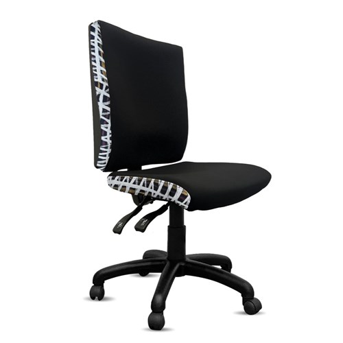 A unique commercial fabrics designed by Paulina Puruntatameri (Indigenous Artist) combined with K2 Black Fabric to upholster the chair. Weight rating: 135kg. Indicated seat hours: 24/7. Seat Dimensions: 510W x 450D x 460-590mmH. Back Height: 580mmW. Back Width: 495mm. Heavy duty commercial chair with 3 lever mechanism and ratchet back height adjustment. 5 way 700mm commercial grade nylon base. Heavy duty gas lift cylinder. Moulded seat foam for supreme comfort. Fire retardant contoured moulded foam. Product image for reference only. Design pattern may differ as a result of variations in the art work. 7 Year Years Manufacturer's Warranty. Delivery, installation and assembly charges may apply to furniture. Please enquire to confirm. Optional adjustable armrest available. Refer to product code 3043352.