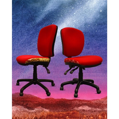 A unique commercial fabrics designed by Damien and Yilpi Marks (Indigenous artists) combined with K2 Red Ochre Fabric to upholster the chair. Weight rating: AFRDI Rated Load 160kg Approved. Indicated seat hours: 24/7. Seat Dimensions: 510W x 490D x 460-590mmH. Back Height: 560mmW. Back Width: 480mm. Heavy duty commercial chair with 3 lever mechanism and ratchet back height adjustment. 5 way 700mm commercial grade nylon base. Heavy duty gas lift cylinder. Moulded seat foam for supreme comfort. Fire retardant contoured moulded foam. Product image for reference only. Design pattern may differ as a result of variations in the art work. 10 Year Years Manufacturer's Warranty. Delivery, installation and assembly charges may apply to furniture. Please enquire to confirm. Optional adjustable armrest available. Refer to product code 3043352.