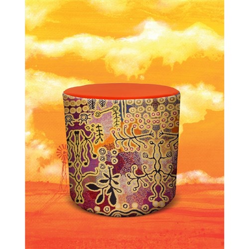A unique commercial fabrics designed by Paddy Stewart (Indigenous artist) combined with K2 Commercial PU Leather. Weight rating: 120kg. Indicated seat hours: 12 hours. Dimensions: 450 Diameter x 460mmH. Provides flexible seating for open plan areas, reception and education spaces. Concealed feet. Fire retardant contoured moulded foam. Available in different size on request. Product image for reference only. Design pattern may differ as a result of variations in the art work. 5 Years Manufacturer's Warranty. Delivery, installation and assembly charges may apply to furniture. Please enquire to confirm.