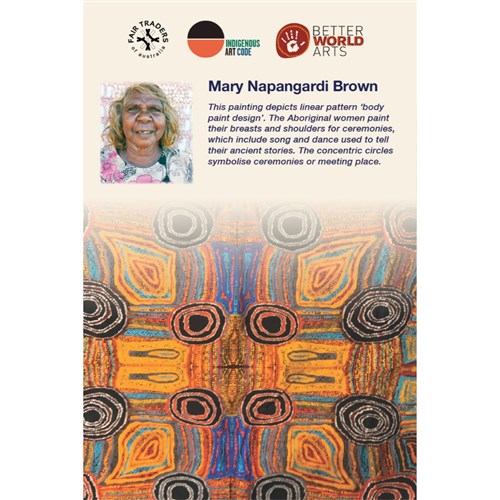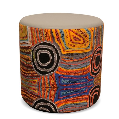 A unique commercial fabrics designed by Mary Napangardi Brown (Indigenous artist) combined with K2 Commercial PU Leather. Weight rating: 120kg. Indicated seat hours: 12 hours. Dimensions: 450 Diameter x 460mmH. Provides flexible seating for open plan areas, reception and education spaces. Concealed feet. Fire retardant contoured moulded foam. Available in different size on request. Product image for reference only. Design pattern may differ as a result of variations in the art work. 5 Years Manufacturer's Warranty. Delivery, installation and assembly charges may apply to furniture. Please enquire to confirm.