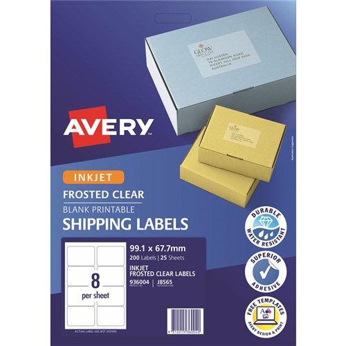 Label Inkjet Avery Parcel J8565-25 Clear 99.1X67.7mm 8 P/Page