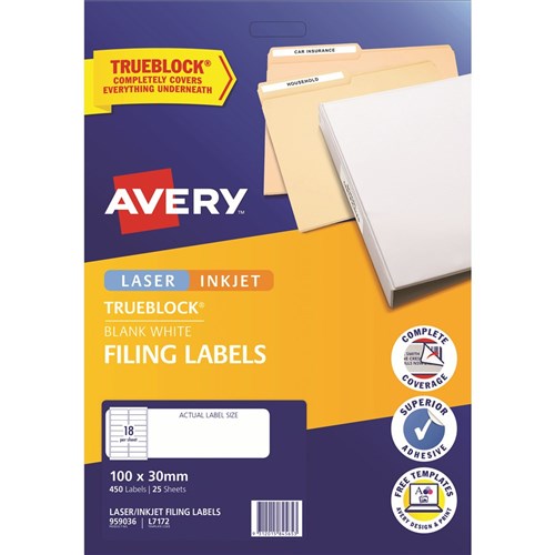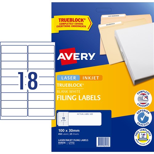 • Label Laser Avery Ring Binder L7172-25 100X30mm 18 P/Page