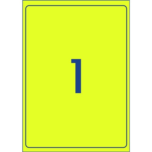 Label Laser Avery Signalling L7167fy-25 Fluro Yellow 199.6x289.1mm 1 P/pag