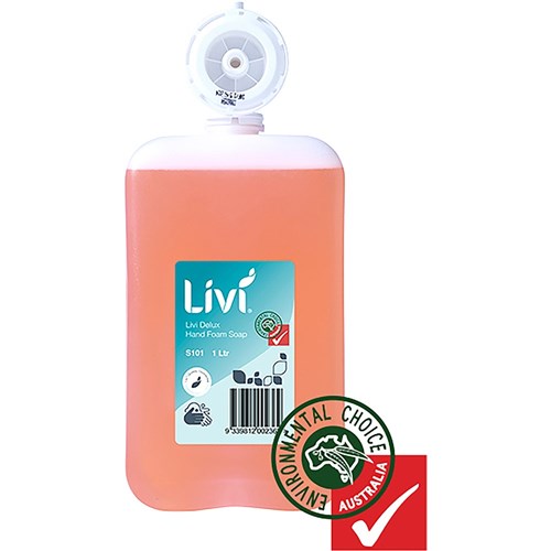 The Livi Delux Perfumed foam hand soap is lightly scented and gentle on skin Each 1 litre pod is sealed and easy to load into the dispenser. This refill provides up to 2000 hand washes per refill and is GECA certified. 6 refills per carton.