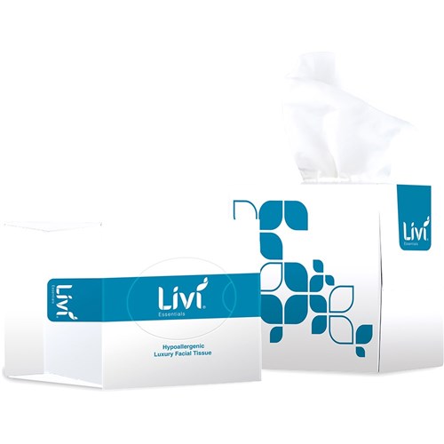 Livi Essentials Facial Tissues Cube Hypoallergenic 2 Ply 90 Sheets