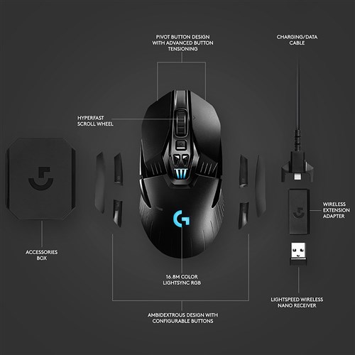 Logitech G903 Lightspeed Black Wireless Gaming Mouse with Hero 16K Sensor