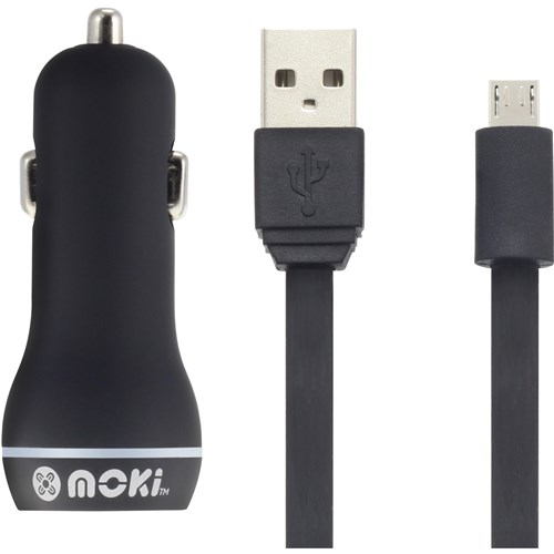 Moki Micro Usb Cable/Charger Cable With Car Charger Black
