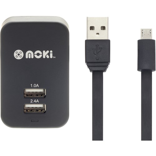Moki Micro Usb Cable/Charger Cable With Wall Charger Black