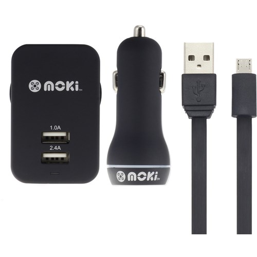 Moki Micro Usb Cable/Charger Microusb Syncharge Cable & Car And Wall Charge