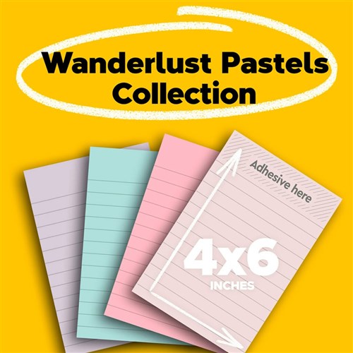 Post-It 4621R-4SSNRP Lined Super Sticky Notes 101mmx152mm Wanderlust Pastels