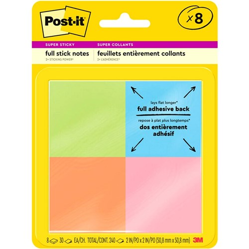 Post-It F220-8SSAU 50x50mm Super Sticky Adhesive Notes