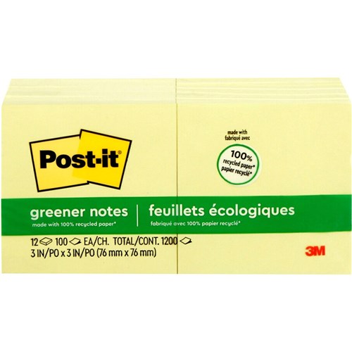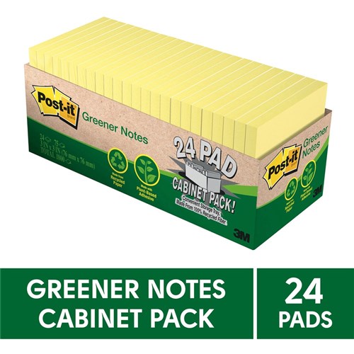 Post-It Yellow Recycled 654R-24CP-CY 75x75mm Adhesive Notes Cabinet Pack