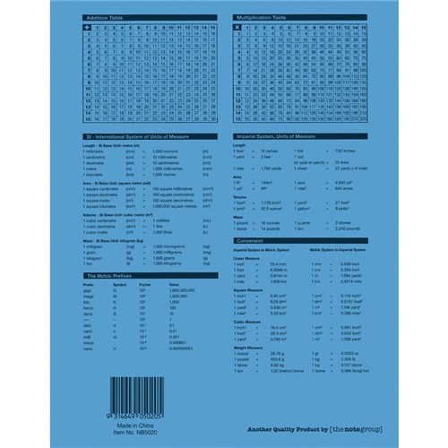 • 4 year calendar, activity page, maths tables & red margin.