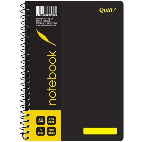Quill Black Polypropylene Spiral Q570 Notebooks A5 200 Page