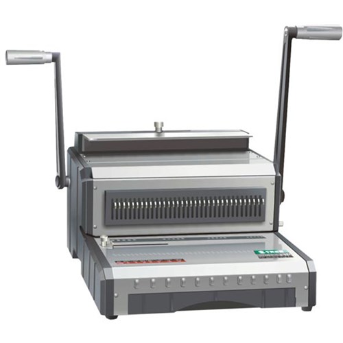 Punches up to 25 sheets. Binds up to 120 sheets. Adjustable margin depth for holes. Disengagable Punches. 3:1 pitch wire. All Metal construction. Separate handle to close wires. 24 month warranty.