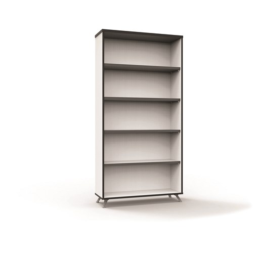 Rapid Infinity Bookcase 1800mm H x 900mm W x 315mm D Includes 4 x 25mm T Adjustable Shelves Finished In Laminate, Featuring Black Edging Polished Aluminium Tapered Legs E1 Rated Melamine Board 5 Year Manufacturer's Warranty.