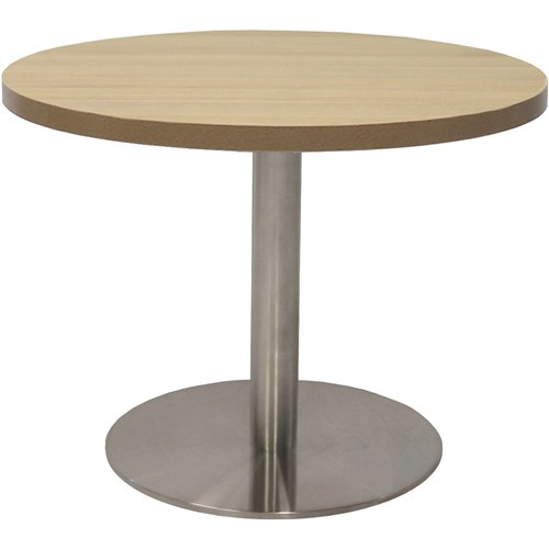 • Rapidline Round Coffee Table 600mm Diam Top Natural Oak Stainless Steel