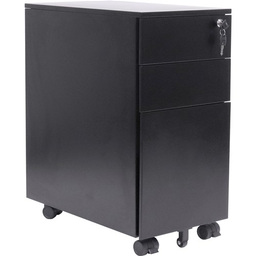 Rapidline Steel Slim Line Metal Mobile Pedestals 3 Drawer Black