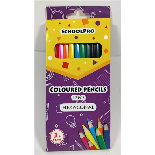 SchoolPro Jumbo Triangular 12 Assorted Coloured Pencils