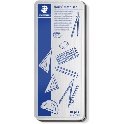 • Contains ruler, protractor, set squares, sharpener, eraser, pencil, compass, dividers and lettering guide.