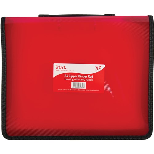 Stat. A4 2 Ring 25mm Red Zippered Binder With Handle