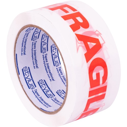 • Black on orange 'Fragile/Handle With Care' message tape, red on white 'Fragile' message tape, and red on white 'Security Seal' message tape.