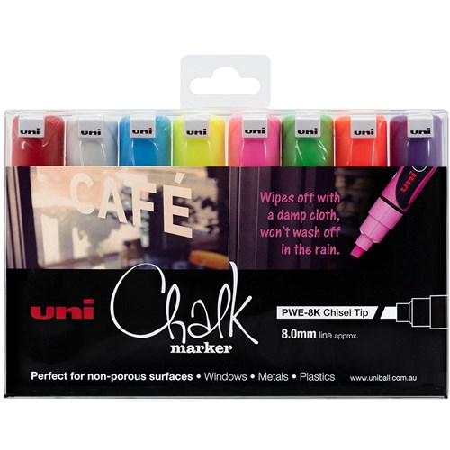 • Uni-Ball Chalk Marker Chisel Tip 8mm Assorted colours Pack of 8