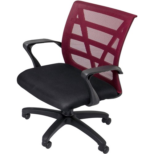 • Vienna Mesh Medium Back Office Chair With Arms Black Fabric Seat Red Mesh Back