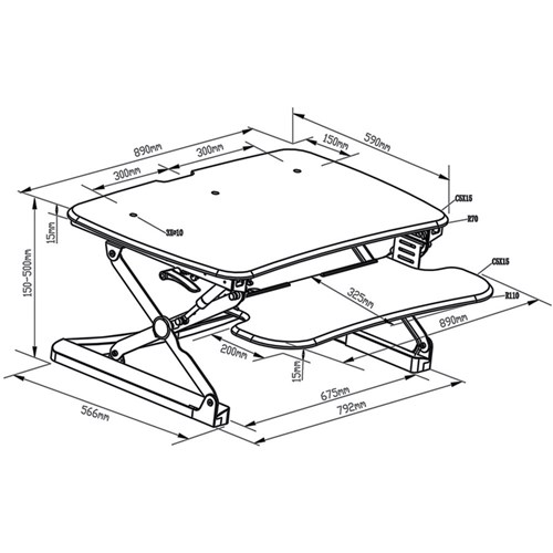 • Workstation Sylex Arise Deskalator 890x590mm Black