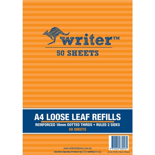 • Writer Binder Refills A4 18mm Dotted Thirds Pack of 50