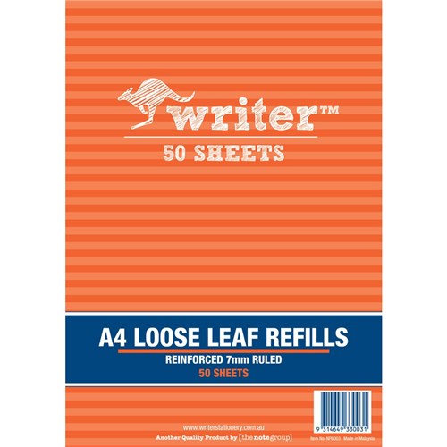• Writer Binder Refills A4 7mm Ruled Reinforced Pack of 50