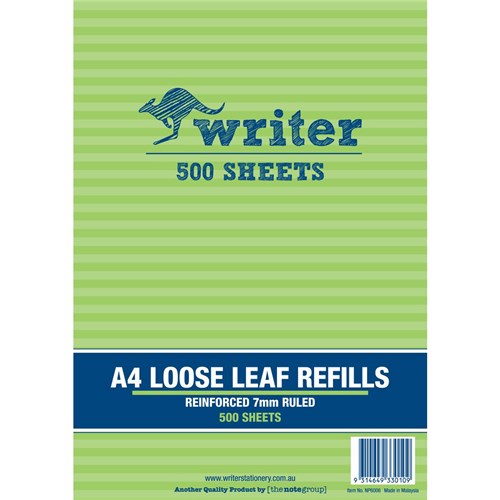 • Writer Binder Refills A4 7mm Ruled Reinforced Pack of 500