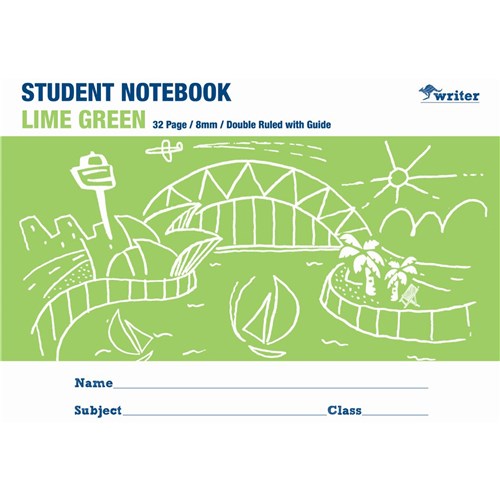 • Writer Student Notebook 175x240mm 8mm Double Ruled 32 Pages Lime Green