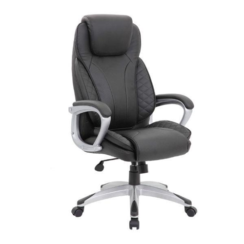 YS305 Black High Back Adjustable Seat Chair with Silver Padded Fixed Arms