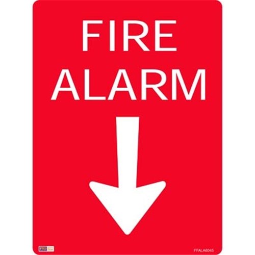 Zions Fire Alarm With Arrow 45x60cm Metal Fire Sign